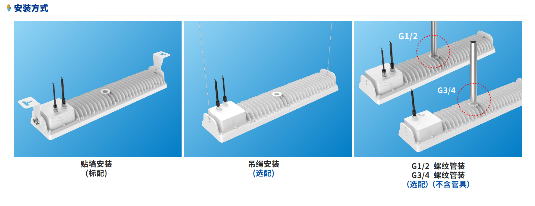 LHB03冷库工矿灯, 专为冷库照明设计,采用模块化设计,拨码调整功率,无需任何工具即可进行。 100W-200W的功率调节,多种光学设计,满足不同场景的需求。产品广泛应用于冷库、冷链运输、大型超市等。